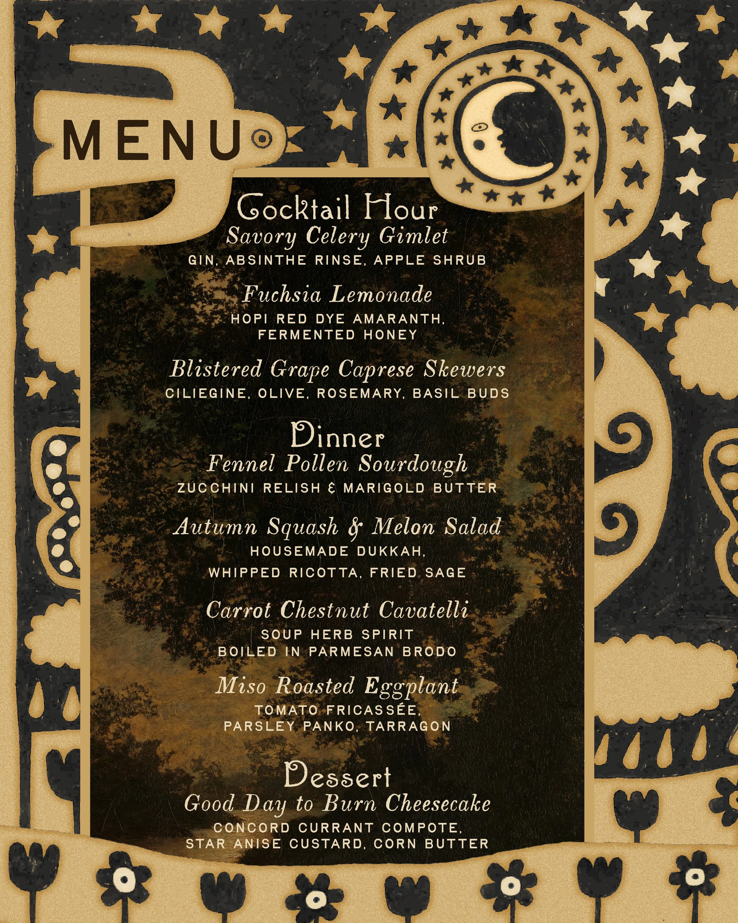 A celebration at Worlds End Farm in Esperance, NY, for the long-awaited release of The New Farmer’s Almanac, Volume 7 from Greenhorns. A sumptuous, all-vegetarian feast by Leah Guadagnoli of Fancy Feast Supper Club—each dish a tribute to local harvests and creative spirit. A night of lively company, boozy drinks, and live readings and performances from Almanac contributors.